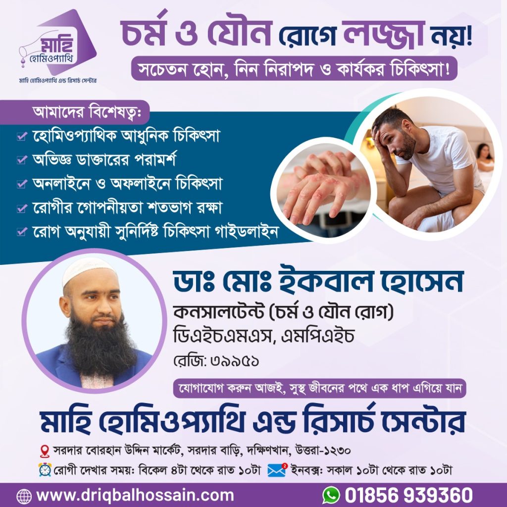 ঠিকানা: মাহি হোমিওপ্যাথি এন্ড রিসার্চ সেন্টার " সরদার বোরহান উদ্দিন মার্কেট, সরদার বাড়ি, দক্ষিনখান, ঢাকা-১২৩০